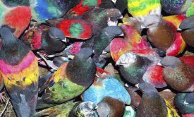 في آخر تقليعة لهم (الحمام الملون) هدايا حاضرة بين الأحبة والأزواج